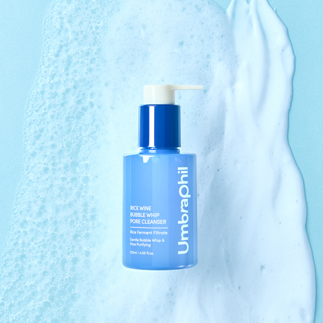 "Sebum-Absorbing Bubble Cleanser Infused with Rice Ferment"
